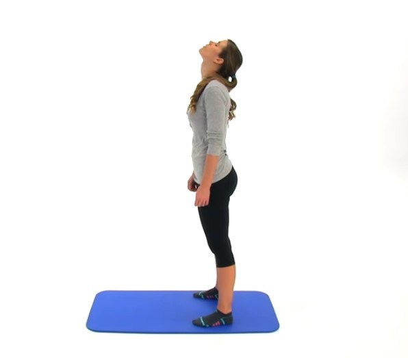 You should press the palms of your hands together as if you were in a praying position, it is important that you raise your hands as far as possible across the spine without causing any discomfort to the spine.